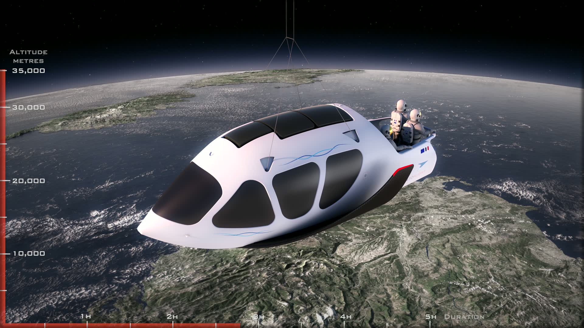 to the stratosphere under a balloon.